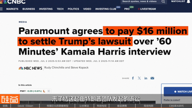 而不少公开报道提到,一个潜在的“交换条件”正在谈判桌上:Paramount/CBS可能会愿意支付1600万美元来了结这起由特朗普团队发起的诉讼,以换取政府更顺利地批准这桩合并案。