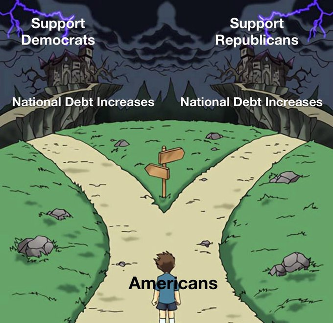 这就是我们的主流认知:国家不会“破产”,总可以通过印钞来偿债。尤其是美国这样的,有权发行全球储备货币的国家。